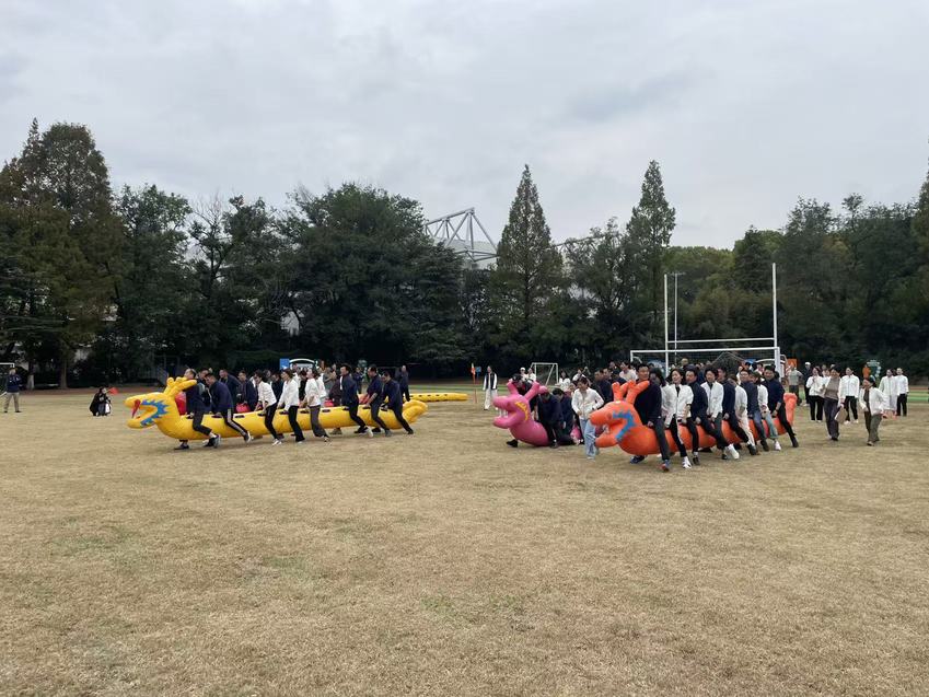 本次比赛共设“雷霆战鼓”、“不倒森林”、“共赴未来”、“趣味毛毛虫”四个集体项目,兼顾趣味性与协作性,需要参赛者有一定的速度、力量与技巧,更注重团队的协作与配合。在“雷霆战鼓”项目中,既要控制好力度,又要把握好节奏,机关第四分工会代表队齐心协力攥紧鼓绳上下挥动,网球在鼓面上欢快的弹跳,发出有节奏的“砰砰”声,扣人心弦;在“不倒森林”项目中,运动训练学院分工会代表队心态平稳、配合默契,凭眼神交流保持杆体不倒,每轮切换都引来全场喝彩:在“共赴未来”项目中,体育教育与人文学院分工会代表队步伐整齐,稳健风采格外亮眼;在“趣味毛毛虫”项目中,武术与艺术学院分工会代表队跨坐充气道具,在啦啦队员打击鼓的伴奏下,一路高歌猛进,令人惊叹。参赛者全情投入,观众呐喊助威,整个赛场俨然一片欢乐的海洋。