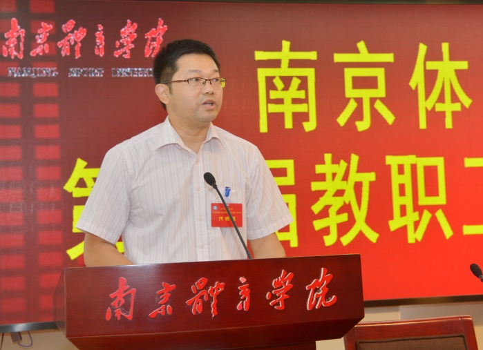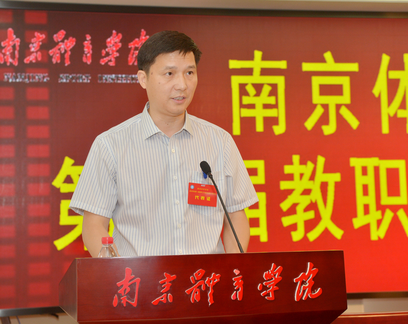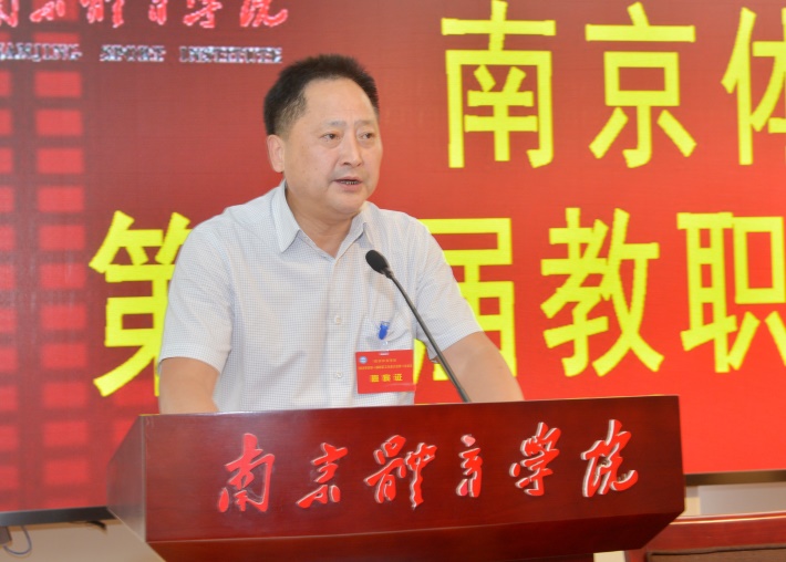 校教代会执委会副主任、工会主席王加华致辞 运动健康学院党总支副书记、分工会主席