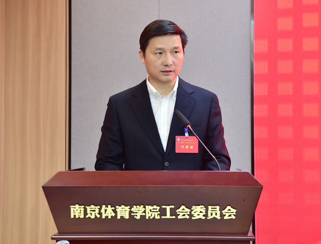 大会在雄壮的国歌声中开幕。校教代会执委会副主任、工会主席王加华代表校工会致辞。他充分肯定了游泳学院分工会在过去一年的工作,代表校工会对游泳学院全体教职工的辛勤付出表示诚挚的慰问和衷心的感谢。他希望游泳学院二级教代会、工会要增强政治性、先进性和群众性,进一步发挥职能作用。一是健全完善学院民主管理制度,充分调动广大教职工的积极性、主动性和创造性;二是切实加强游泳学院分工会在学院建设与发展中的作用,积极推进,不断深化,努力推动分工会的健康发展,切实使分工会成为学院行政管理工作的助手,起到建言献策、维护民主、促进单位发展的重要作用;三是构建党建带工建机制,紧紧围绕学院的中心工作和发展目标,充分发挥工会组织的桥梁和纽带作用,切实关注教职工之所需,解教职工之所求,真真正正的为群众办实事、解难事,打造工会工作特色项目,争创模范“职工小家”,把广大教职工的智慧和力量凝聚到完成学院的各项任务和奋斗目标上来,在学院已有辉煌成就的基础上再创佳绩,为学院的改革、发展、稳定做出新的、更大的贡献。