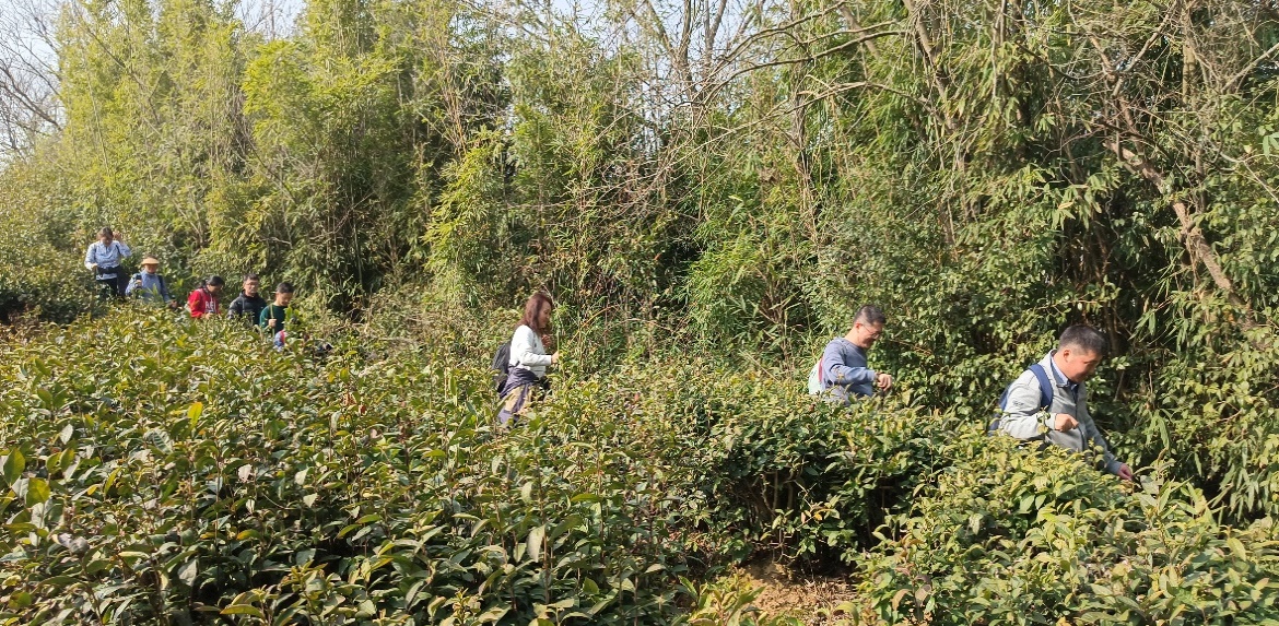 按照前期已规划好的路线,会员们从句容山一方国际度假村停车场出发,沿着乡间青石路前行,穿越茶园进入林区,开启了寻乾隆古道、访隆昌古寺、观秦淮之源、游千华古村之旅。行进途中,大家互帮互助,前面行走的会员看到沟坎、路遇倒伏的树木拦路时,主动提醒后面的会员注意安全。