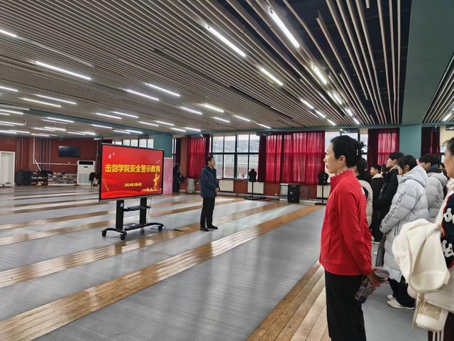 34日下午,击剑学院开展“安全警示教育”主题分享会,击剑学院全体教练员、运动员观看了火灾案例警示录宣传片。
