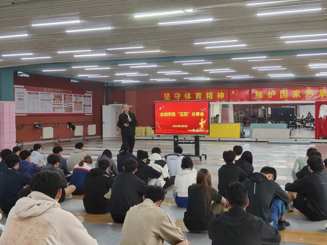 5月4日,为纪念五四运动105周年,深入学习贯彻习近平总书记关于青年工作的重要思想,击剑学院举办五四青春分享会,击剑学院关工委常务副主任、国家级教练员任大新为大家讲述江苏击剑队光辉历史,弘扬击剑队优良传统。击剑学院院长沈朝阳出席分享会并讲话,击剑学院全体管理人员、教练员、运动员参加分享会。分享会由击剑学院副院长、击剑队领队孙海平主持。
