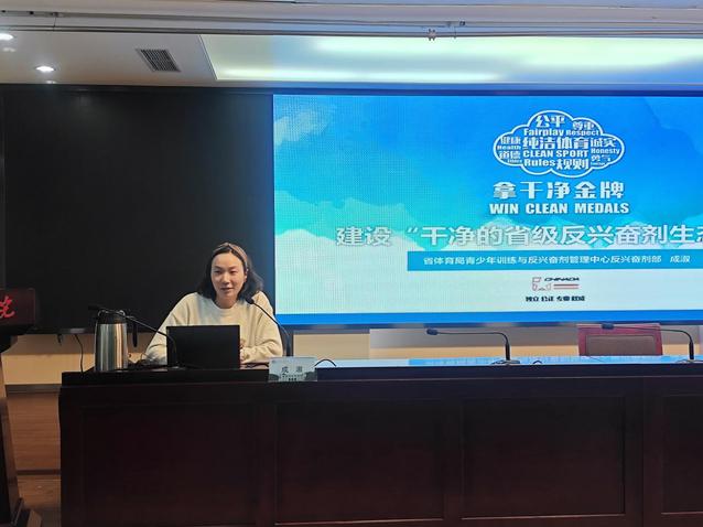 会上,成淑以“建设干净的省级反兴奋剂生态体系”为主题,为与会人员带来了一场生动深刻的专题讲座。她从“拿干净金牌”的反兴奋剂治理体系出发,详细阐述了江苏省反兴奋剂组织体系的建设情况,并重点讲解了“八个干净”和“十严”的具体要求。最后,成淑呼吁全院师生要严格遵守“八个干净”和“十严”要求,为击剑运动共同营造一个公平、公正、纯洁的竞技环境。
