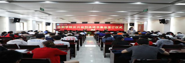 5月4日下午,击剑学院举行反兴奋剂承诺书集体签订仪式,学院全体管理干部、教练员、运动员以及体校运动员参加了会议,会议由副书记徐炳生主持。