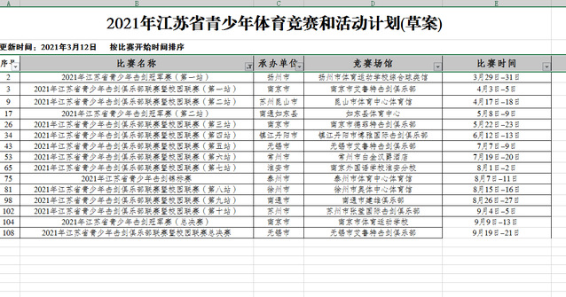 2021年江苏省青少年体育竞赛和活动计划(草案)