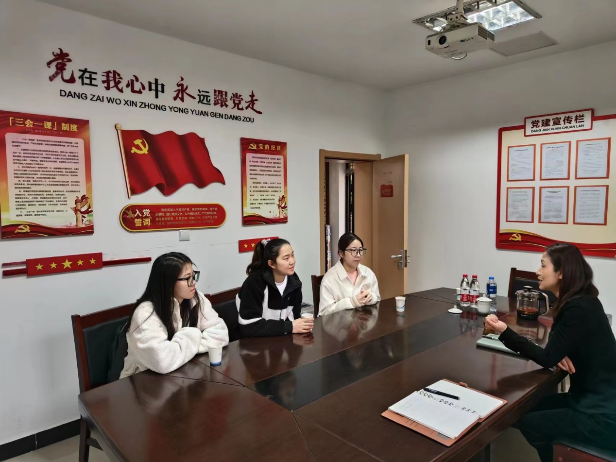 3月19日,我院正在备战巴黎奥运会的女子花剑组运动员石玥、王雨婷、胡恺耘回宁调整。今天上午,击剑学院直属党支部书记朱小兰与回宁队员举行了座谈。