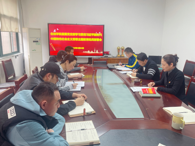 4月24日,击剑学院召开学习贯彻习近平新时代中国特色社会主义思想主题教育动员部署大会,认真贯彻落实习近平总书记在主题教育工作会议上的重要讲话精神,对学院全面开展主题教育进行动员安排。学院直属党支部书记朱小兰、院长沈朝阳、副院长孙海平、各训练组主教练、全体教职工出席会议。