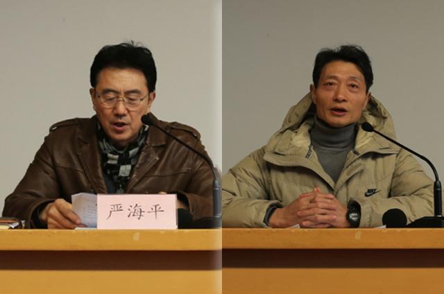 教务处处长严海平(左)、科研处副处长高力翔(右)讲话