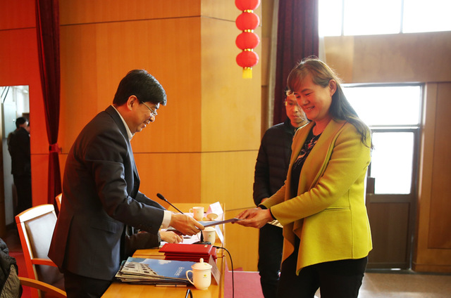 院机关有关部门、各教学单位主要负责人签订并向杨国庆院长递交本科教学审核评估责任书,
