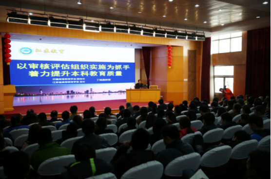 2月18日上午,我院本科教学审核评估动员大会在院图书馆报告厅隆重召开。省教育厅原副厅长、中国高等教育学会副会长、省高教学会会长丁晓昌教授应邀出席大会并作题为《以审核评估组织实施为抓手,着力提升本科教育质量》的评估辅导讲座。院领导陈国祥、汤岩、史国生、李江、蒋宏伟、黄步龙出席了大会,院长杨国庆主持了评估辅导讲座。