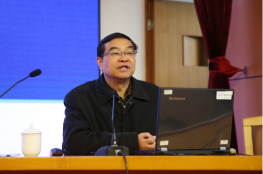 省教育厅原副厅长、中国高等教育学会副会长、省高教学会会长丁晓昌教授作评估辅导讲座