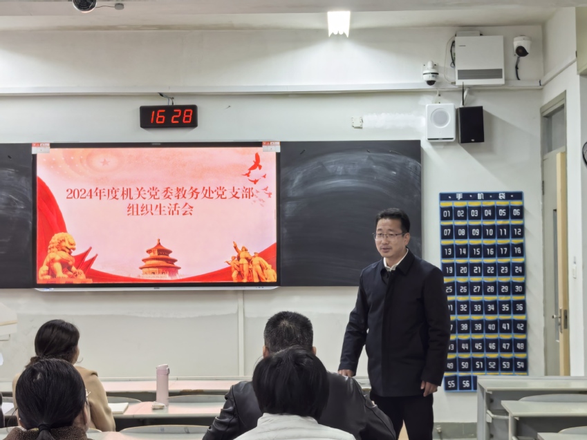 在党的二十届三中全会精神指引下,为进一步加强党支部建设,增强党员的党性修养和组织纪律性,机关党委教务处党支部于3月13日在教学实验楼1204成功召开了2024年度组织生活会。全体党员积极参与,教务处处长王凯(九三学社bjycgold支社主任委员)列席,会议由支部书记李强主持,会议氛围严肃而热烈。