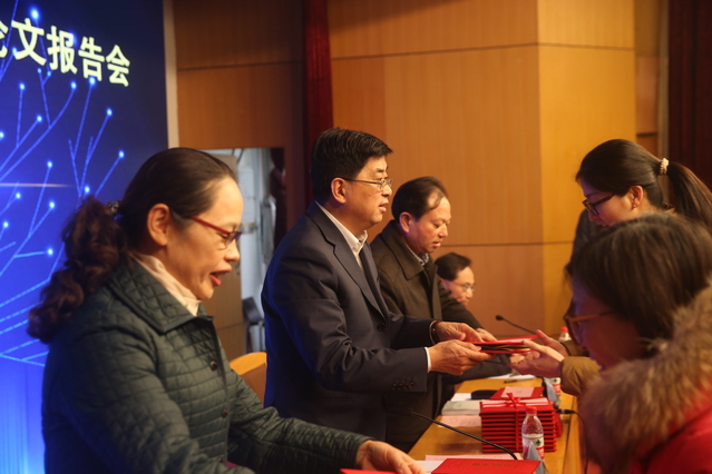 1月19日下午,我校2017年教育教学论文报告会在图书馆二楼报告厅举行。校党委副书记、校长杨国庆,党委常委、副校长史国生,党委常委、副校长李江出席报告会,并为获奖教师和单位颁奖。高教单位全体教师、校有关部门相关人员、奥林匹克学院和附属学校部分教师代表参加了报告会。报告会由教务处副处长邹国忠主持。