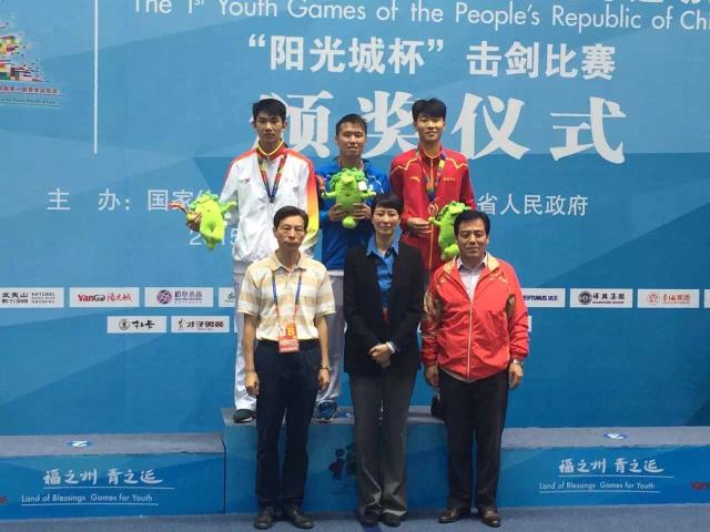 10月21日,继我院击剑选手夺得一青会女佩个人冠军后,运动员黄露露在击剑项目男子佩剑个人决赛中代表南京市参赛并夺得冠军!路阳代表新疆夺得一枚铜牌!