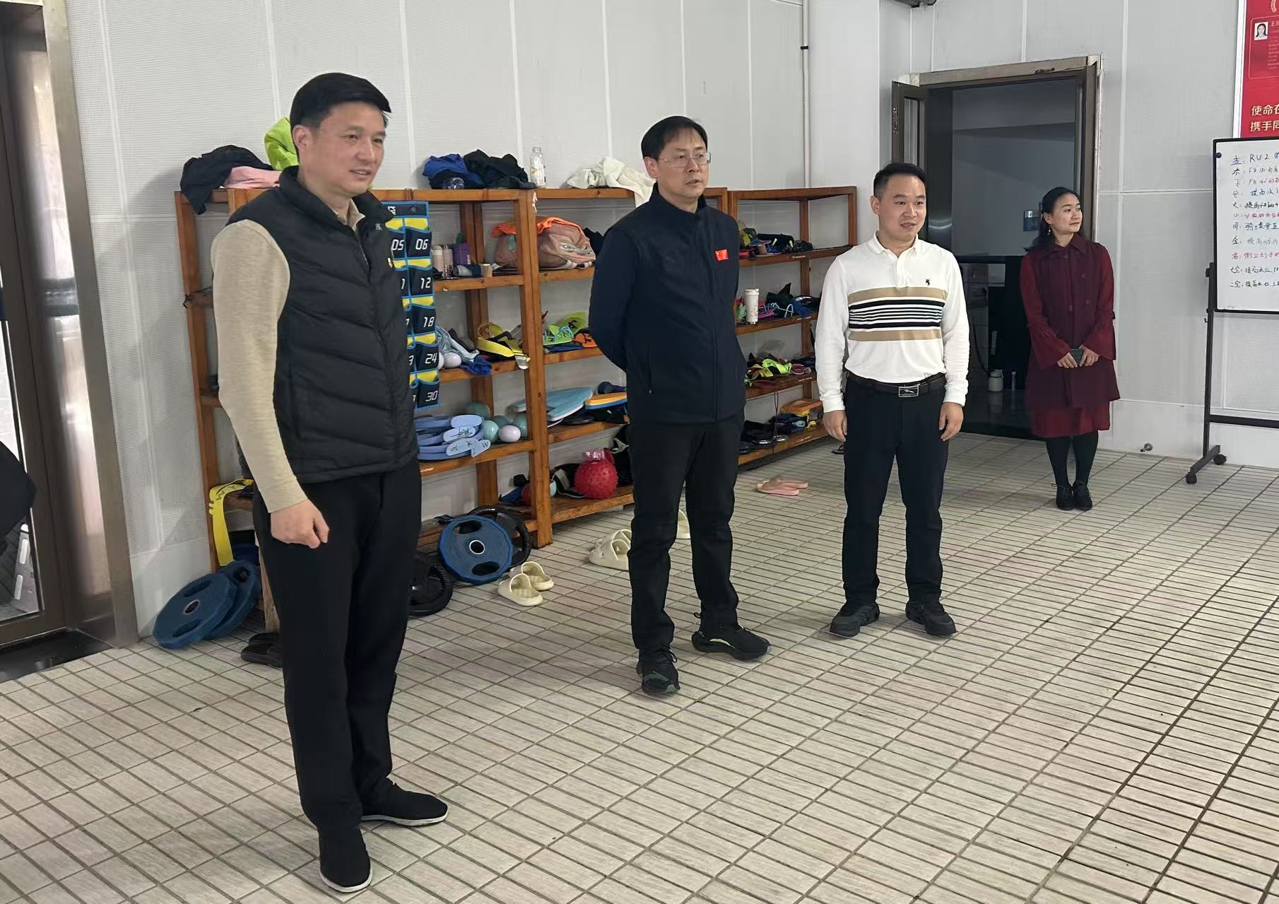 陈少军局长、刘红明书记、刘健副校长在游泳队