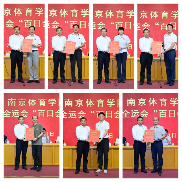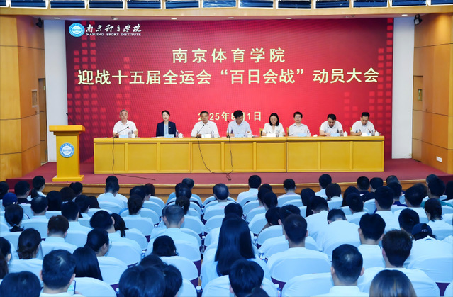 在第十五届全运会倒计时一百天之际,为进一步明确目标任务,部署备战工作,夯实主体责任,鼓舞三军斗志,8月1日上午,我校在图书馆报告厅隆重举行迎战十五届全运会“百日会战”动员大会。江苏省体育局副局长刘彤,省体育局二级巡视员、竞体处处长许秋红;校党委书记刘红明、校党委副书记兰亚明、副校长鲍勤、副校长刘健、纪委书记、派驻监察专员刘海宁、副校长王猛出席大会。会议由副校长刘健主持。