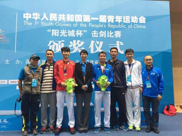 10月21日,继我院击剑选手夺得一青会女佩个人冠军后,运动员黄露露在击剑项目男子佩剑个人决赛中代表南京市参赛并夺得冠军!路阳代表新疆夺得一枚铜牌!