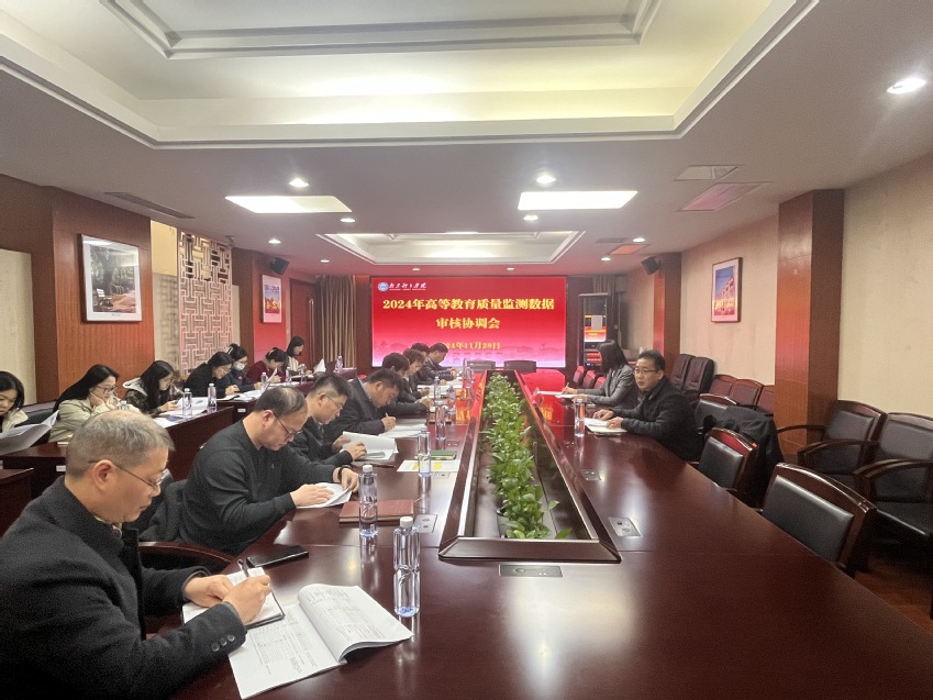 11月28日上午,我校在办公楼301会议室召开2024年高等教育质量监测数据审核协调会。党委常委、副校长肖爱华出席会议,相关职能部门、二级学院负责人及数据填报人员参加会议。会议由教务处处长王凯主持。
