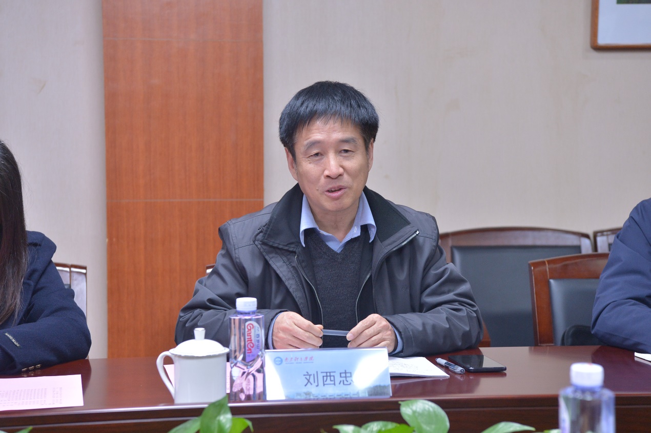 兰亚明首先对刘西忠主席一行的莅临表示热烈的欢迎,对省社科联对我校智库建设工作的支持表示诚挚的感谢。他从位置优越、历史悠久、环境优美和特色鲜明四个方面介绍了我校的基本情况。针对我校决策咨询研究基地建设,兰亚明提出四点要求:一是高度重视,全力以赴,做好基地建设的人财物保障;二是更好对接政府需求,提升决策咨询能力;三是整合人才资源,凝炼研究方向,创新运行机制,努力产出标志性成果;四是扎根江苏省,把成果写在祖国大地上。