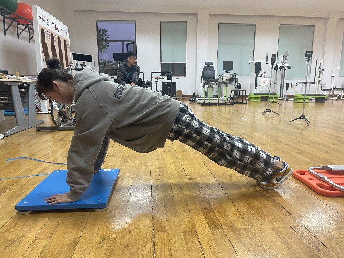 王赐月在测力台上进行上肢爆发力测试