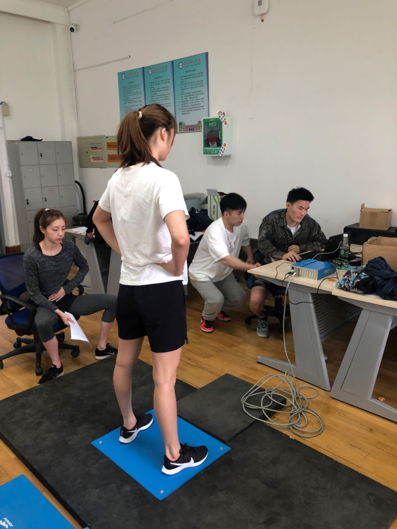 王赐月在测力台上进行下肢爆发力测试