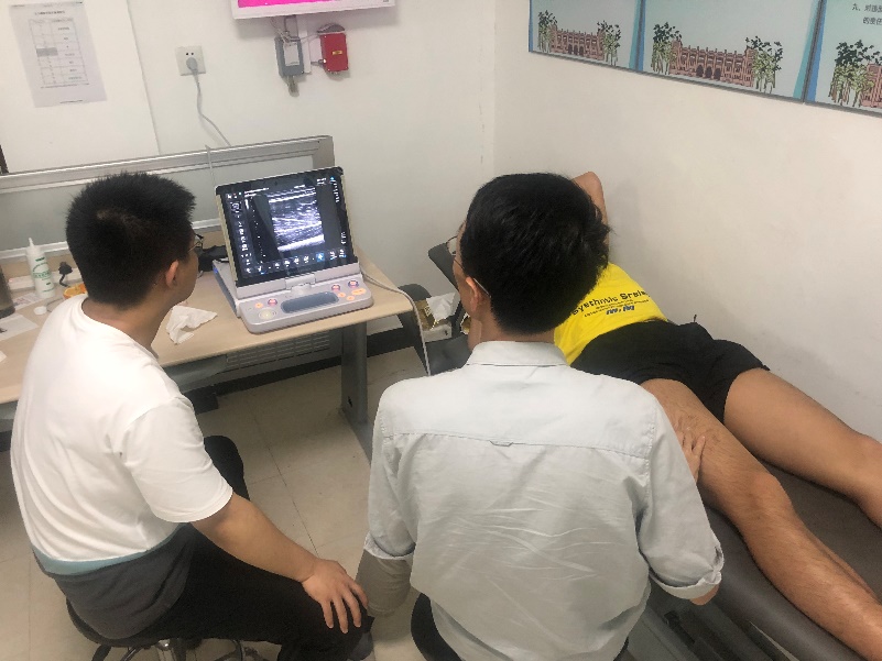 协同临床专家为王赐月进行肌肉骨骼超声测试