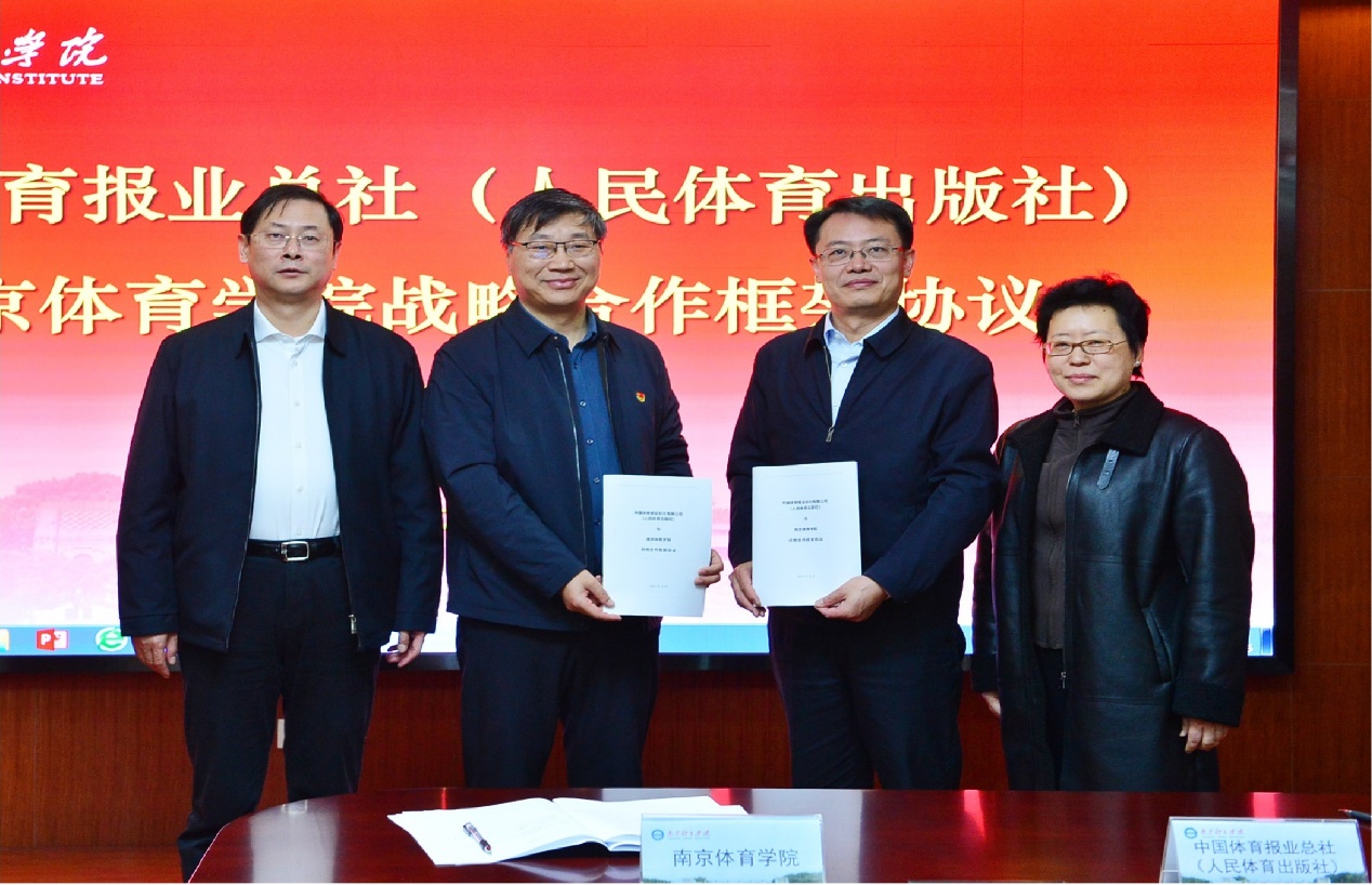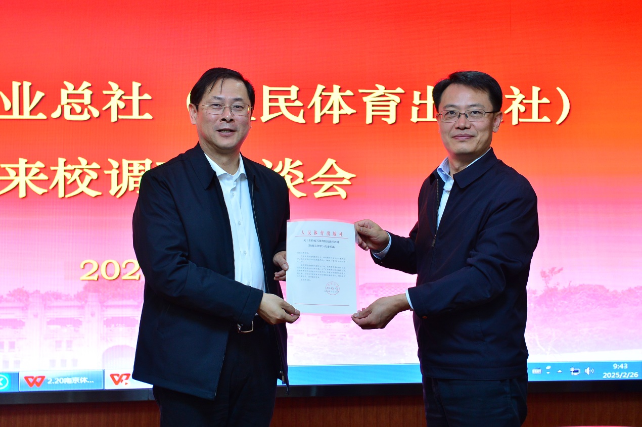 2月26日上午,中国体育报业总社(人民体育出版社)与我校战略合作框架协议签约仪式在行政楼301会议室举行。校党委副书记、校长吴兵成出席签约仪式并致欢迎辞,中国体育报业总社党委委员、副社长、人民体育出版社总编辑王良玉出席签约仪式并讲话。人民体育出版社副总编辑吴永芳,我校党委研究生工作部、研究生工作处、教务处、科研处等部门负责人出席仪式。仪式由校党委常委、副校长陈爱国主持。