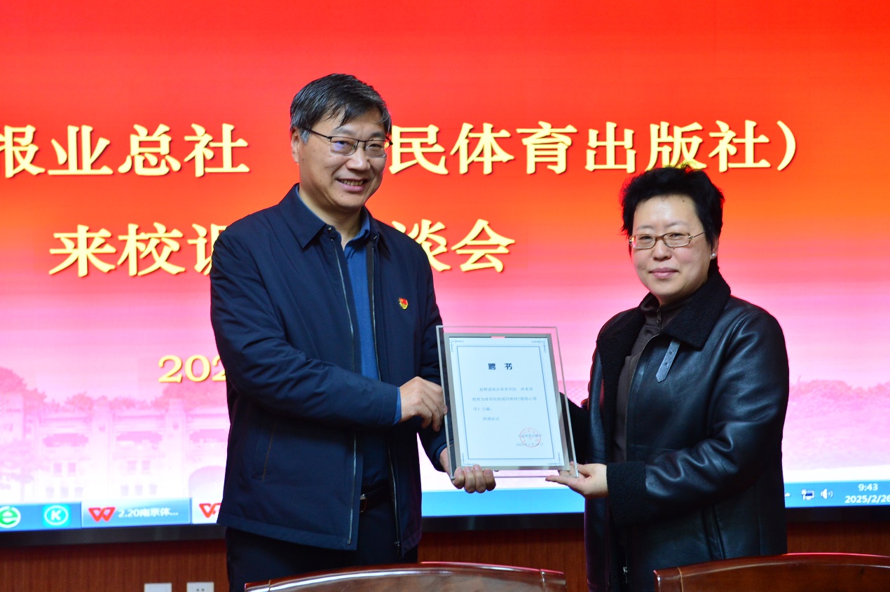 在仪式上,王良玉、陈爱国代表双方签署战略合作框架协议,王良玉向我校颁发体育院校通用教材《锻炼心理学》主编单位委托书,吴永芳向陈爱国颁发《锻炼心理学》主编聘书。