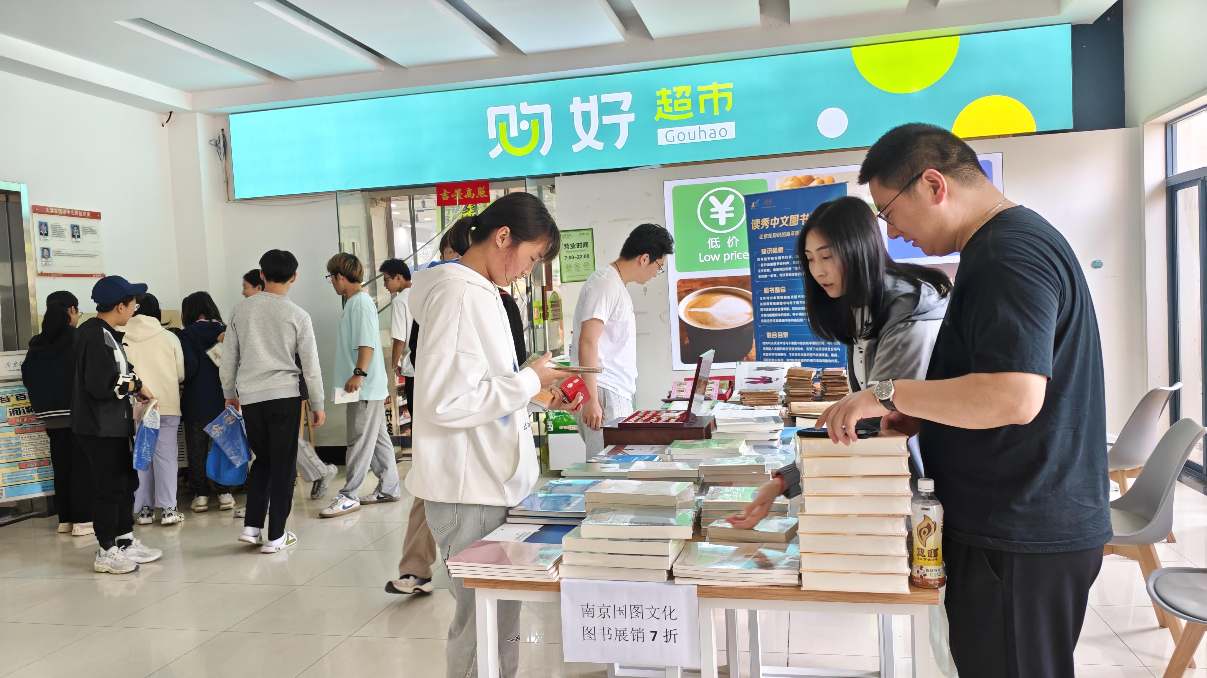 另外,图书馆还邀请优质图书供应商前来现场展销经典、热门的人文社科图书,为本次活动增添了活力。图书馆副馆长李明华还带领馆员及勤工助学的学生馆员对仙林借阅室内部空间进行了适当调整,提升了该室文化学习氛围。