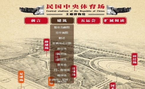 “3D全景博物馆”可以360度浏览、欣赏民国中央体育场建筑群的实景及文史资料。通过按钮,可以通达民国中央体育场建筑群各场馆之间,犹如身临其境。
