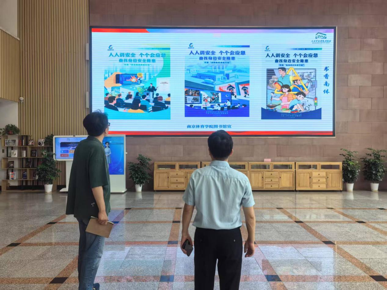 安全生产月期间,图书馆充分发挥宣传阵地作用,通过馆内电子大屏循环播放“人人讲安全、个个会应急”主题标语,以高频次、广覆盖的传播形式强化师生安全意识。同时,依托微信公众号平台推出“人人讲安全、个个会应急——2025年安全生产月知识宣传”专题宣传报道,系统普及交通安全、自然灾害防范、家用电器安全使用等知识,助力营造全社会共同关注安全、参与安全维护的良好风尚。