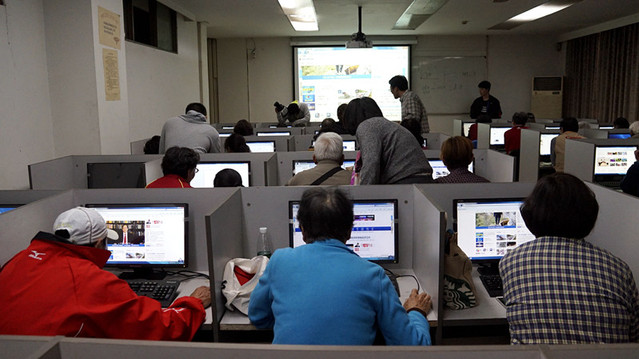 老同志们对于计算机技能学习热情高涨,培训定于下午3点开始,2点40分图书馆计算机A教室已座无虚席。