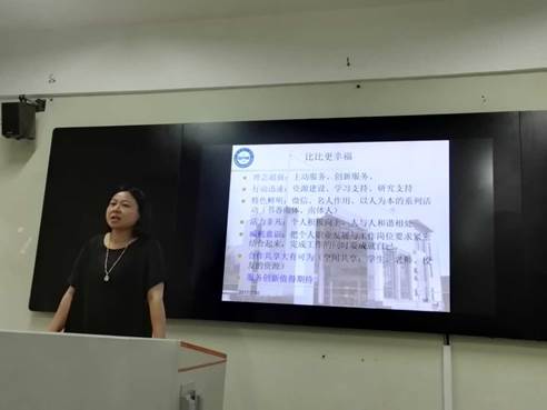 最后,中心葛主任对此次总结交流会议进行了总结。葛主任指出,听了大家的汇报,感触很深。感谢大家对她上任中心工作以来的支持,大家在最短的时间接受新的工作思路。中心的每一项工作离不开大家的付出。其次,葛主任与大家共同分享了参加馆长培训的感受和体会,认为我们中心在工作理念、主动服务、微信、阅读推广等方面已经超前其他一些图书馆,对我们今后的工作充满信心。最后,葛主任对下学期如何创新服务、工作愿景、学习计划等提出要求,以及对暑期的图书馆改造、部分人员值班进行安排。