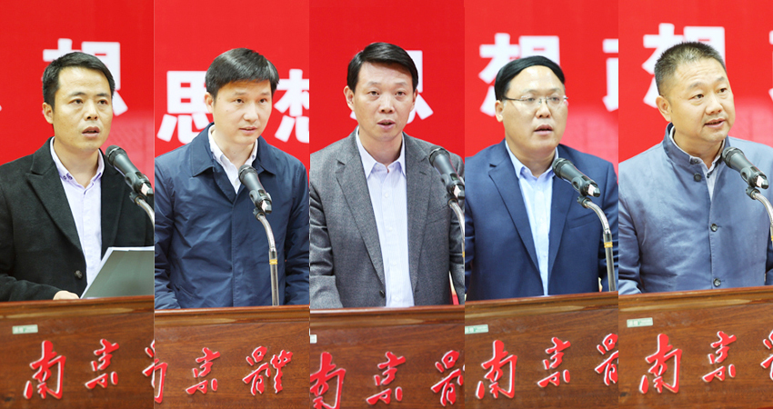 社会科学部思政课教师渠彦超,击剑自行车系副主任、击剑队领队王伟新,党委宣传部部长许立俊,党委学工部部长、学工处处长唐存楼,总务处处长张敏分别代表教学、训练、管理、服务等方面作表态发言。