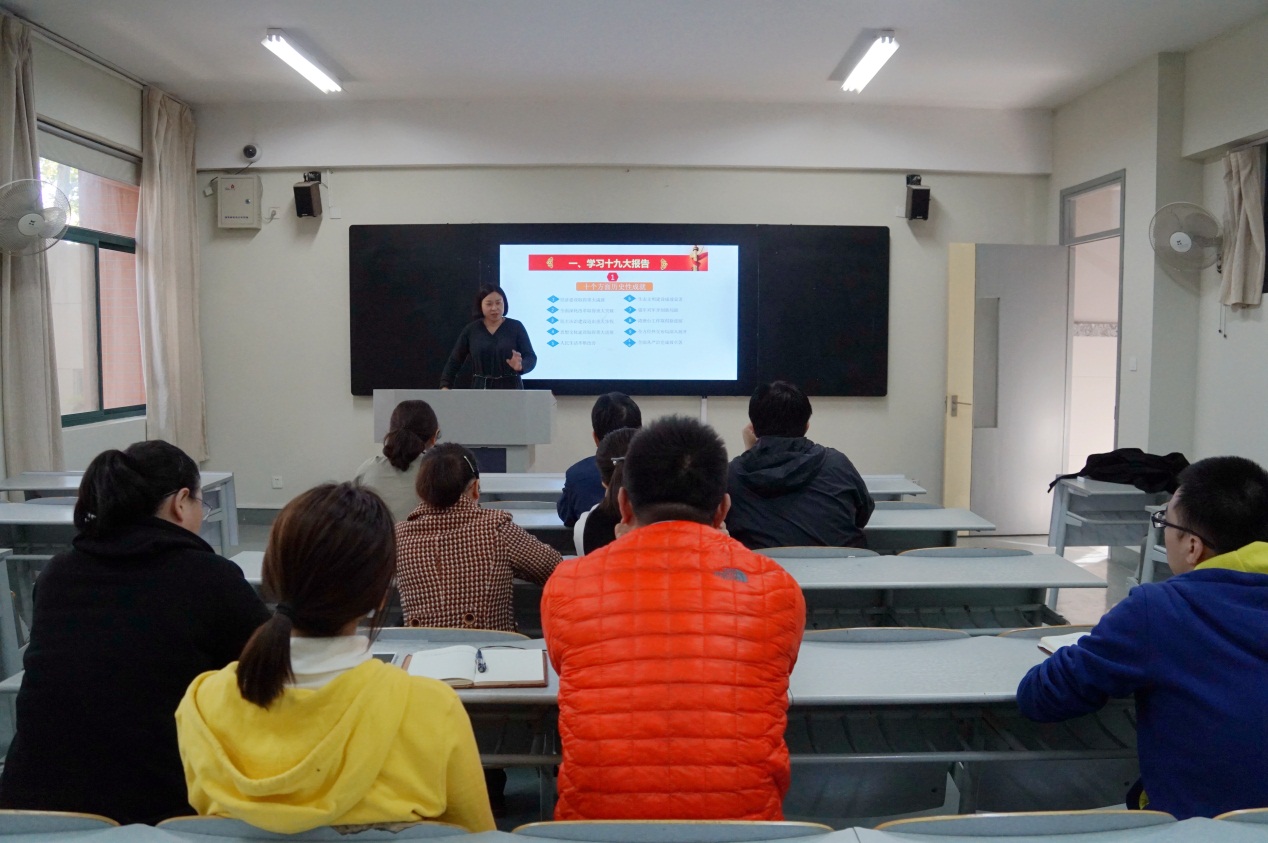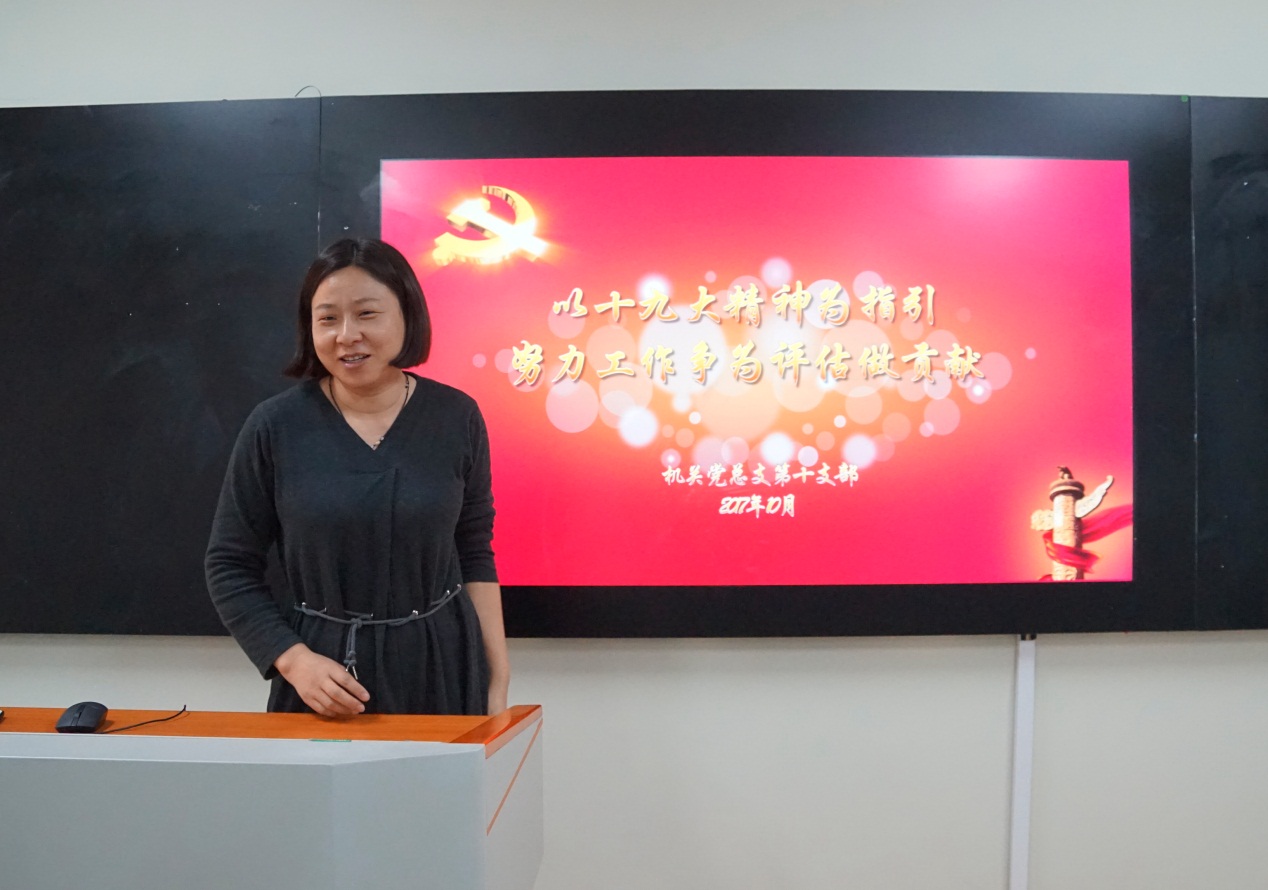 11月1日中午,机关党总支第十党支部组织开展 “以十九大精神为指引,努力为评估做贡献”专题学习讨论会,图文信息中心副主任、支部书记葛见珠主持,支部全体党员参加。