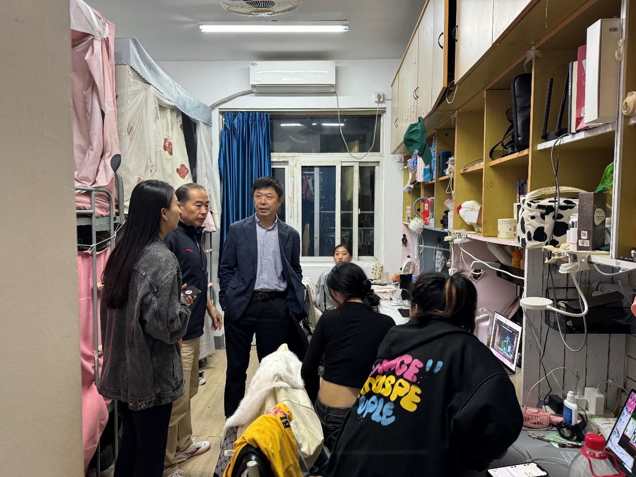 为切实加强学生的安全教育,消除学生宿舍存在的安全隐患,预防安全事故的发生,为学生成长创建整洁、安全、温馨的宿舍生活环境。10月25日晚,由学院党总支书记张亚军、副书记杜家俊带队,辅导员常青、马高曼、陆丹一起深入学院学生宿舍,开展学生宿舍安全隐患排查和卫生检查。