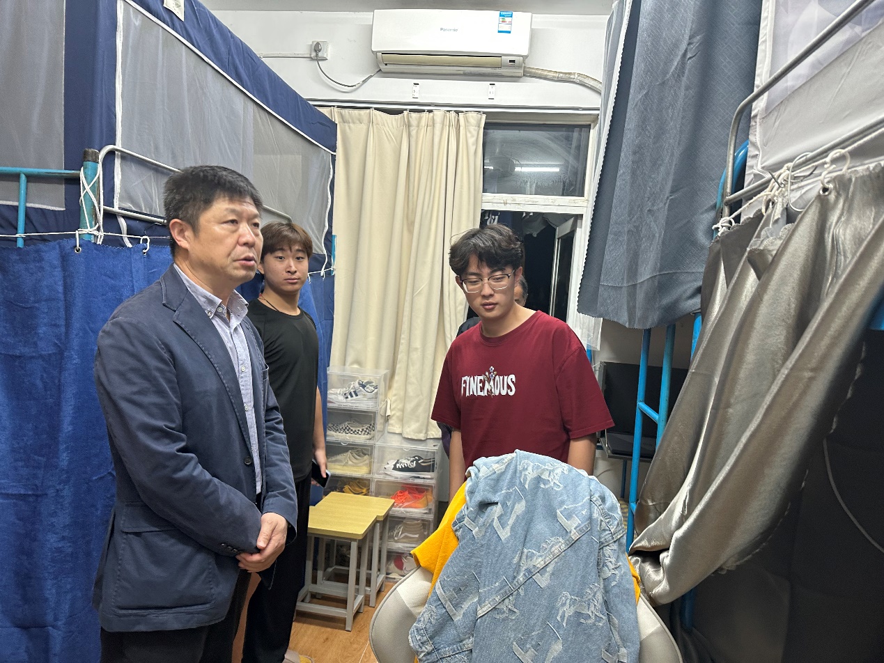 在随机检查过程中,每到一个宿舍,老师们都仔细检查宿舍的环境卫生,有无使用违章电器等情况,对检查过程中发现的问题提出限期整改。在检查的同时,老师们与学生进行交谈,了解学生在校学习、生活情况和存在的困难,叮嘱同学们要遵守学校有关宿舍管理的相关规定,提高宿舍安全防患意识,保持宿舍干净整洁,确保有一个安全舒适的学习生活环境,同时要保持积极、健康、向上的心态,以饱满的状态投入到学习、训练中去。