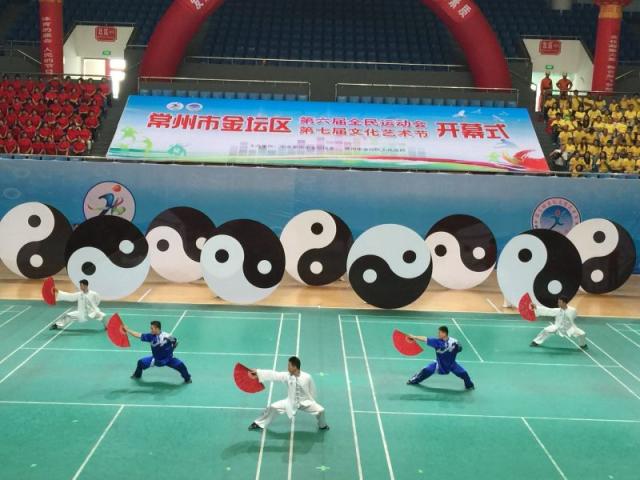 本次开幕式由常州市金坛区委,金坛区人民政府共同主办。参与表演的有来自金坛区的多个民间协会的表演方阵,内容丰富,表演精彩。而我系武术队的《太极功夫扇》演出在服务社会的同时,也展示了我系学生武术套路专业能力之风采,并迎来了观众们阵阵热烈的掌声!本次演出我系学生圆满地完成了领导与导演组交给我们的任务,也得到了社会各界的赞扬与认可!