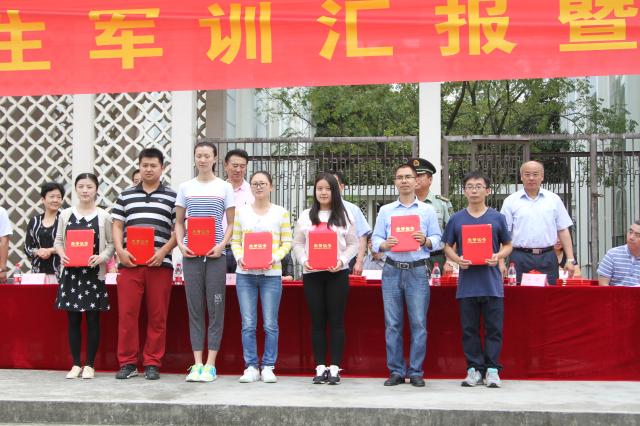 表演结束后,院人武部部长兼保卫处处长、军训大队政委王加华作军训工作总结,有关负责老师对2015级新生军训先进集体先进个人以及标兵宿舍进行了表彰。我系女生排巾帼不让须眉,获得“先进排”荣誉称号,得到了有关领导和教官老师的高度赞扬。另外,高志伟等17名同学获得“优秀学员”荣誉称号,我系三个宿舍当选标兵宿舍