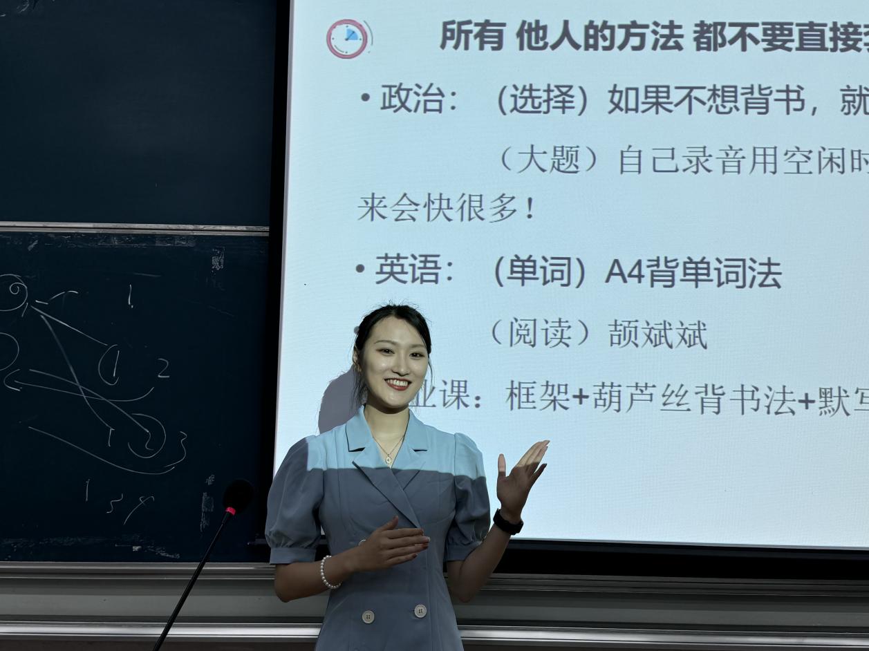 王博龙、潘雨桐、倪宇桐三位同学分别给大家分享了考研经验,对2025年考研形式进行分析,鼓励同学们把握机会,尽早做好考研准备,在机遇与挑战下,端正态度、直面竞争,在拼搏中找到自身定位,提醒同学们要及时调整考研状态,多做真题,全力以赴。