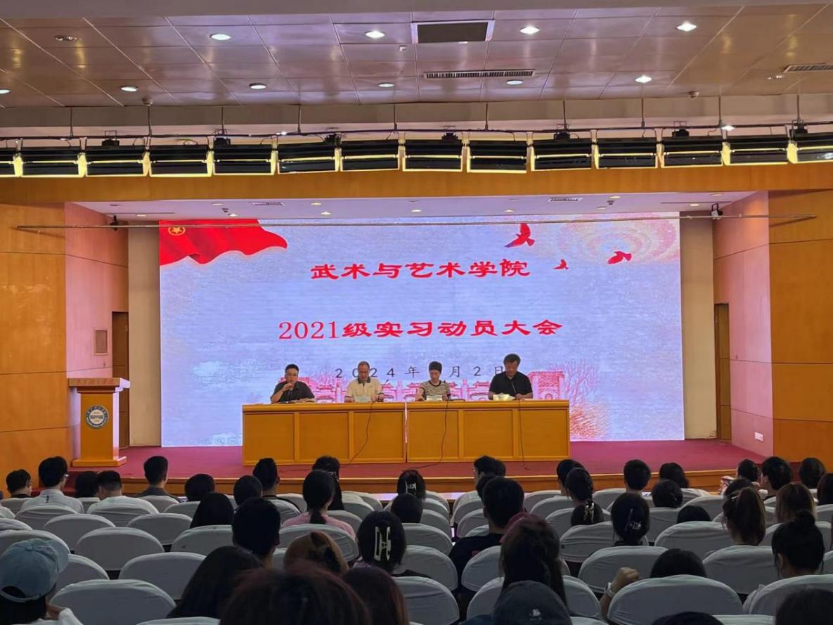 9月2日上午,武术与艺术学院在图书馆第一报告厅召开2021级实习动员大会。武术与艺术学院党政班子出席会议,教学秘书、2021级辅导员、实习带队老师及全体2021级学生参加会议。会议由教学秘书郎君儒主持。