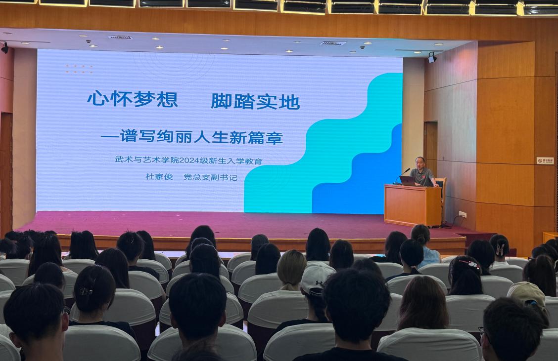 北斗西指,白露迎秋。9月13日中午,武术与艺术学院于图书馆第一报告厅召开2024级新生见面会。武术与艺术学院领导班子成员出席,学院行政人员、各系正副主任、2024级辅导员及全体新生班主任参加了见面会。会议由2024级辅导员陆丹主持。