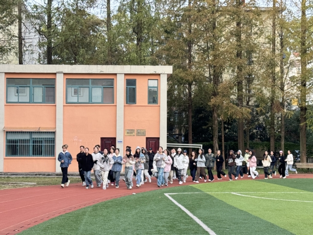 学院对此高度重视,提前布置、精心组织,党总支书记叶瑛、副书记杜家俊、2024级辅导员陆丹提前抵达教学田径场,全程进行陪同指导,确保早操规范有序进行。