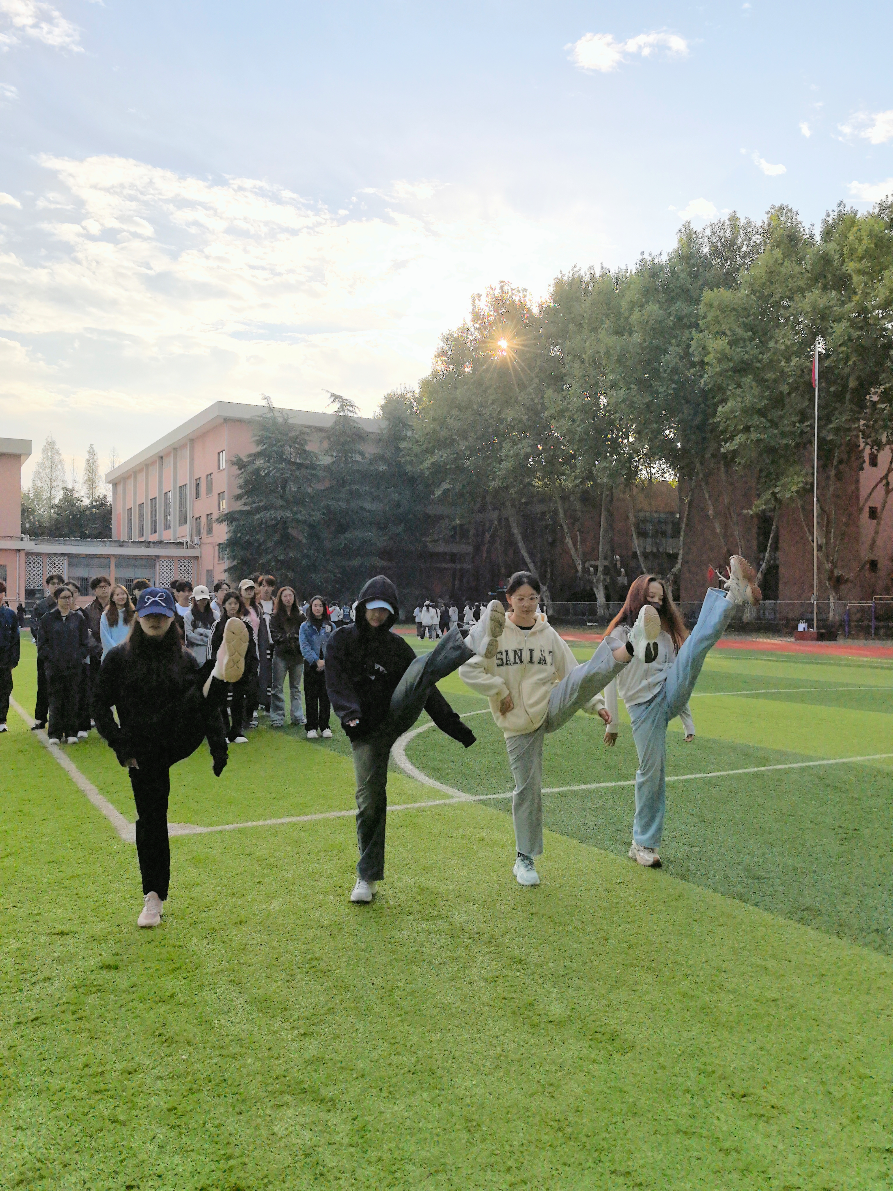 早上6点45分,学生来到教学田径场集合整队,按时按点起跑,展现出朝气蓬勃和阳光向上的精神风貌。各班在学生干部的带领下开展特色早操活动:基本功训练、体能训练、太极拳、技巧组合练习……充分展现大学生的青春活力。大家齐心协力,“武”动青春,“艺”心筑梦。