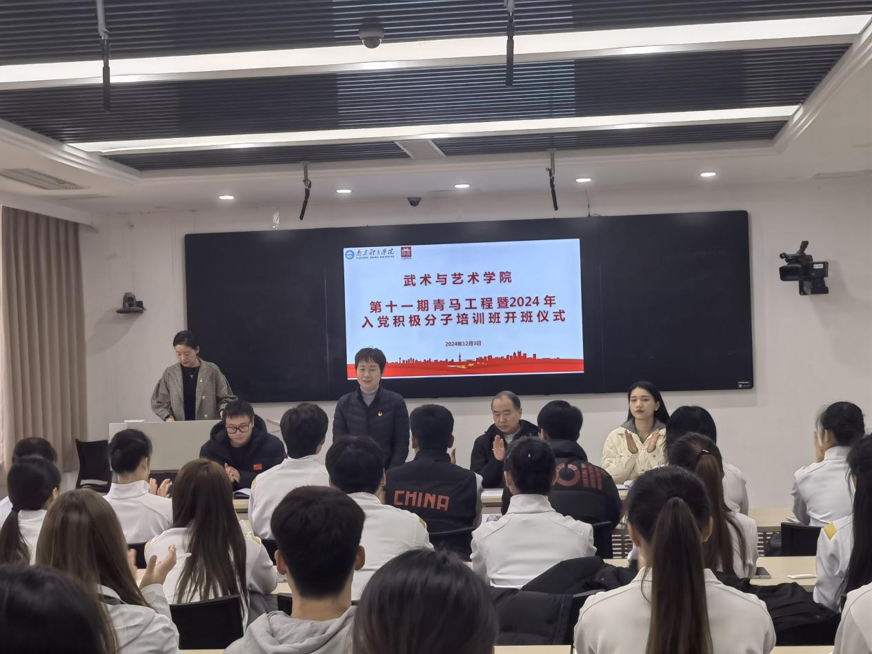 为深入学习宣传和贯彻好党的二十届三中全会精神,进一步提升学生骨干的政治素养,更好地发挥学生骨干的模范作用。2024年12月3日下午,在图书馆第二报告厅召开武术与艺术学院第十一期“青年马克思主义者培养工程”暨入党积极分子培训班开班仪式。武术与艺术学院党总支书记叶瑛、副书记杜家俊,辅导员常青、马高曼、陆丹以及本期培训班全体学员参加。开班仪式由马高曼主持。