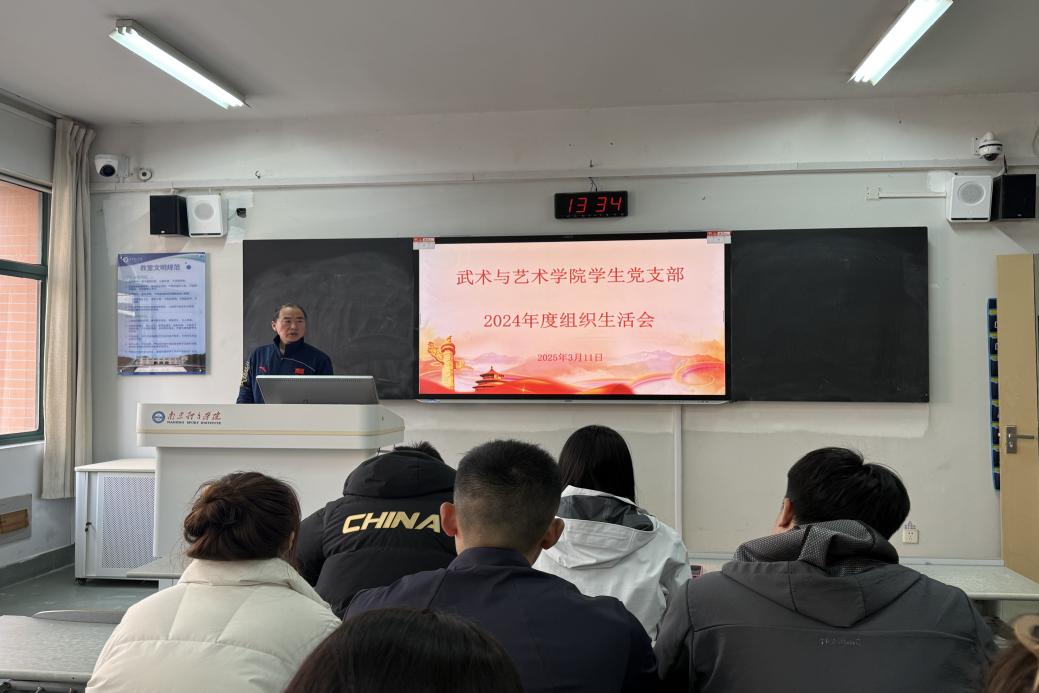 按照校党委《关于召开2024年度基层党组织组织生活会和开展民主评议党员的通知》文件精神,3月11日下午,武术与艺术学院学生党支部在教学楼1202召开了组织生活会暨民主评议党员大会,全体师生党员参加了此次会议,会议由辅导员马高曼主持。