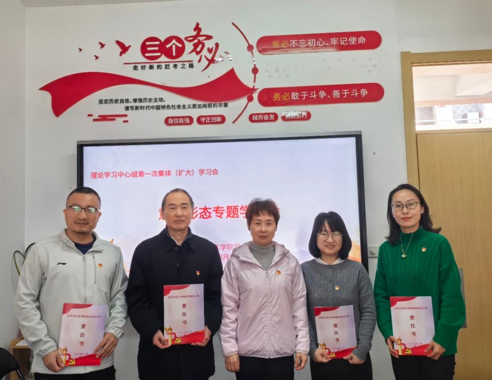会上,党总支书记叶瑛、副书记杜家俊进行了领学,副院长唐芒果和学工办副主任常青围绕学习内容并结合自身工作进行了交流发言。各支部书记签订并递交了2025年意识形态工作责任书。