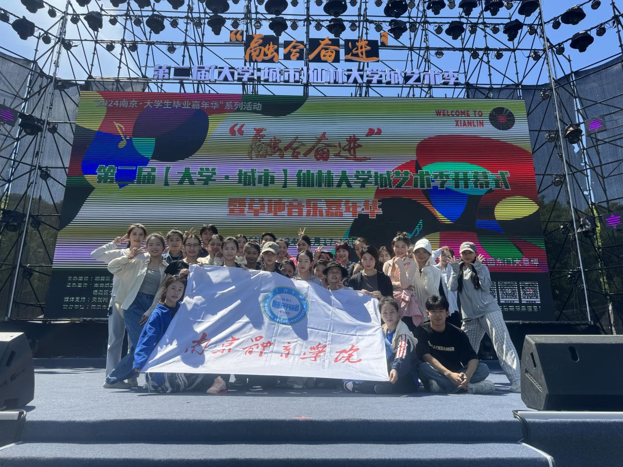 2024年5月17日晚,第二届“大学·城市”仙林大学城艺术季在仙林羊山湖公园拉开帷幕。由武术与艺术学院舞蹈系教师吴文君带领的32名学子前往现场为此次开幕式活动表演了原创节目《排·练》、《奔跑的青春》以及各高校合作节目《凤凰花开的路口》。
