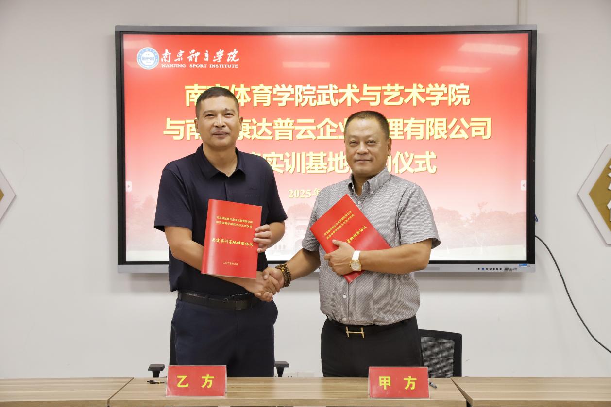 仪式上,张明与缪凯共同签署合作协议,教务处处长王凯为实训基地揭牌。此次实训基地的建立,将有效整合学院教育资源与企业行业优势,为推动体育行业人才的培养提供有力支撑。