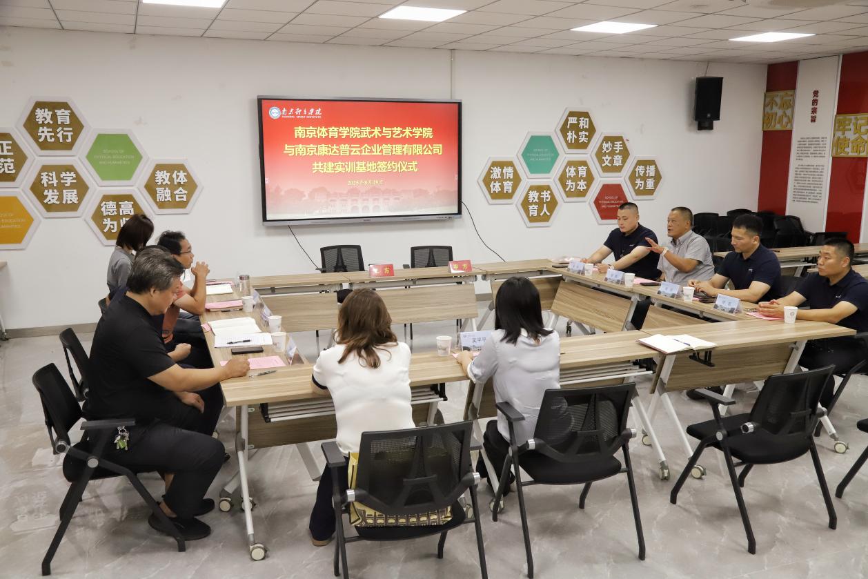 仪式伊始,武术与艺术学院院长张明代表学院对康达普云公司一行的莅临表示热烈欢迎,并系统介绍了学院的办学特色与育人成果。他表示,学院高度重视本次合作,期望通过实训实现优势互补、资源共享、相互促进、协同发展。学院将以实训基地为纽带,推动教学内容与行业标准对接、实践环节与岗位需求融合,为学生搭建从理论学习到职业发展的全链条培养平台。